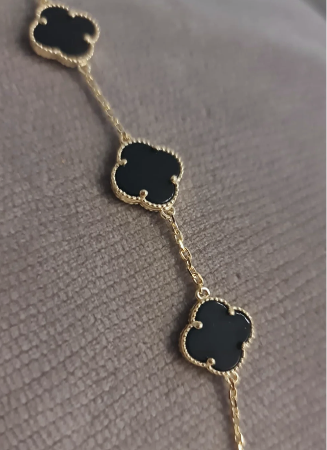 Lucky Klee Armband Schwarz- Sterling Silber 14k Vergoldet