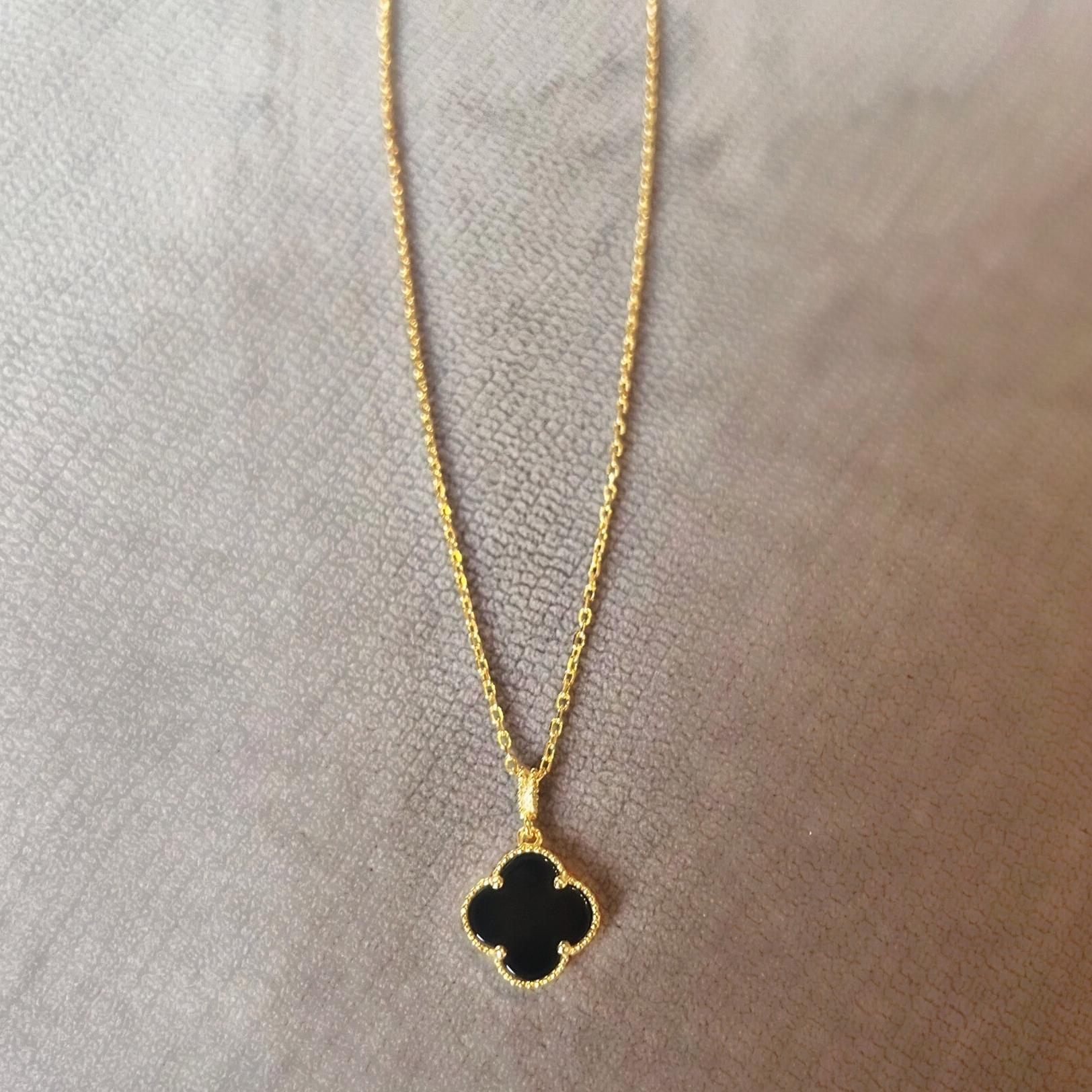 Lucky Klee Halskette Schwarz- Silber 14k Vergoldet
